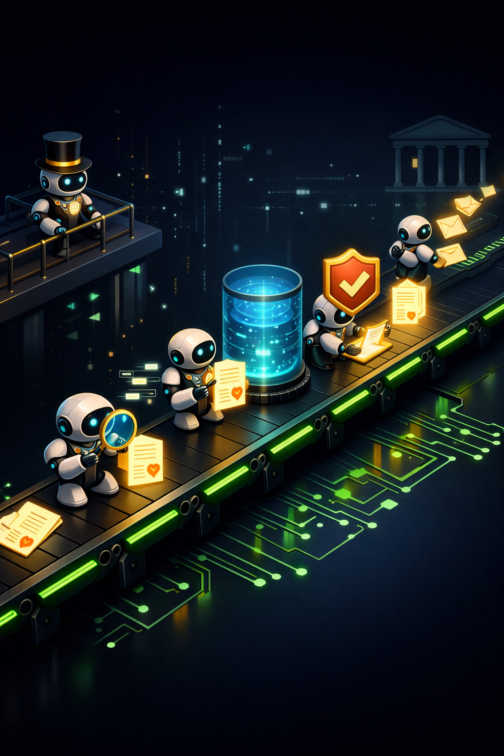 Por se tratar de um processo sensível que não admite erros, cada etapa da esteira possui agentes de controle de qualidade dedicados que validam a acurácia da extração, a completeza dos dados e o cumprimento de prazos antes de permitir que o fluxo avance. Tudo com conformidade total à LGPD e curadoria humana (human-in-the-loop).